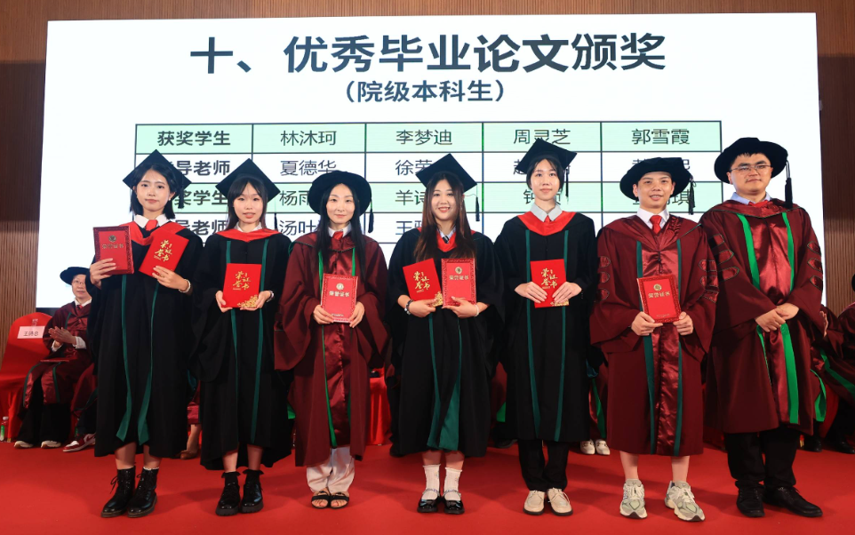 师生代表发言后,逐一举行了优秀毕业论文获奖同学及指导老师颁奖, 2024届优秀毕业生表彰,以及2024届年级理事聘任仪式。