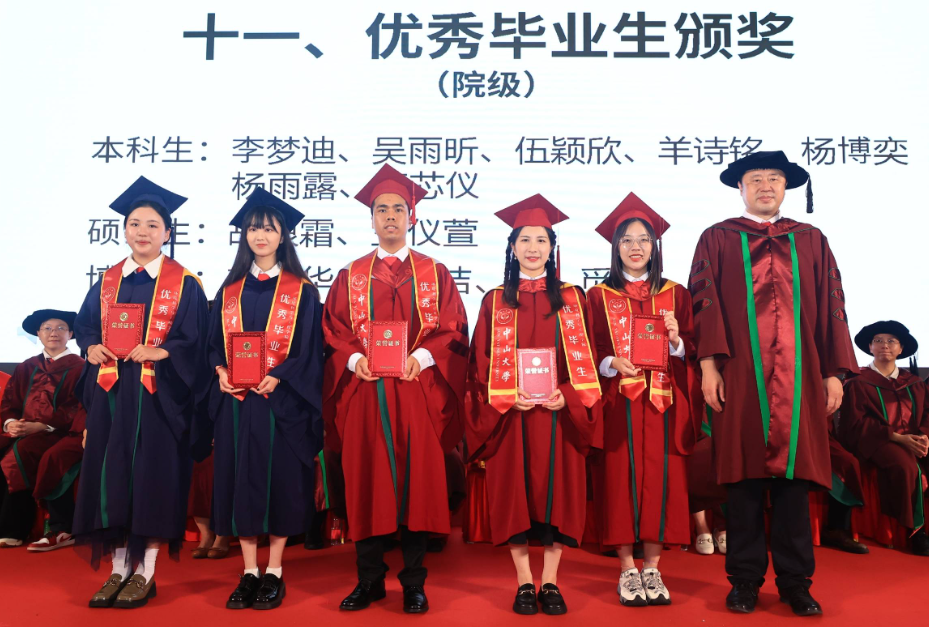 随后,黄裕熙副教授作为导师代表向全体毕业生发言。这一届毕业生克服重重困难完成了学业,在挑战中迅速成长,大家的青春都是独一无二的。在大家即将开辟自己新的人生征程之时,与大家共勉:一是勇于担当、胸怀家国;二是坚持学习、融会贯通;三是坚韧不拔、从容淡定。在百年校庆之际的毕业大会更是意义非凡,希望同学们作为骄傲的中大环境人,带着百年校庆的荣耀,为国家和社会贡献力量,实现人生抱负。