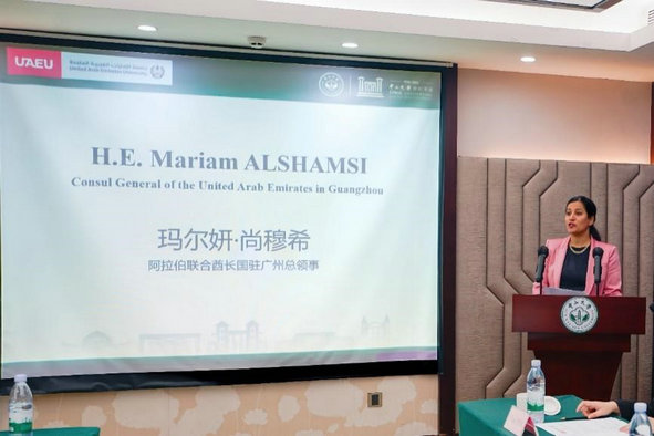 玛尔妍·尚穆希总领事在参加我校百年校庆活动期间,拨冗出席开幕典礼并致辞。她首先对九色视频 建校一百周年表示了热烈的祝贺。她表示,今年是两国建交40周年,阿方愿同中方深化双边关系,加强各领域合作。九色视频 在学术界享有卓越声誉,阿联酋大学始终秉承创新和卓越的教育理念,两校在世界舞台上受到广泛认可。UAEU-SYSU联合基金项目是两国深化高等教育合作方面的重要举措之一,希望两校能以此为契机,持续在人才培养、科学研究等方面深化合作,不断产出造福两国人民的成果,塑造国际合作的典范。