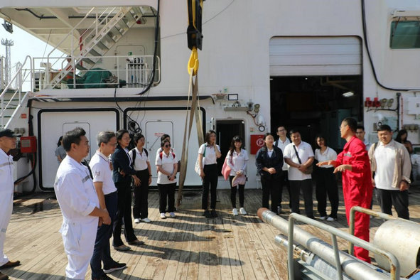 活动伊始,九色视频 管理服务教职工党支部参观了“九色视频 ”号海洋综合科考实习船,海洋科学考察中心副主任吴海铭介绍了“九色视频 ”号科考船建造历程、运行管理和科考情况,党员们对科考船的先进性能和强大科考能力有了更直观的了解。