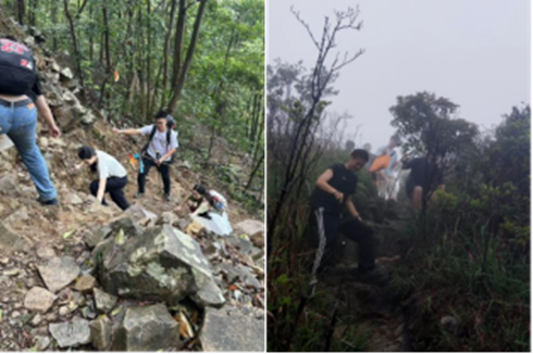 天堂顶作为广州最高峰,素有“南粤之巅”的美誉,沿途森林茂密、溪流清澈,全程18公里,累计爬升1210米。清晨,全体党员同志便齐聚天堂顶山脚。随后沿丛林原生态道路、竹林山径等路线徒步,同步开展净山行动。